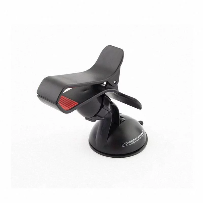 Uniwersalny uchwyt samochodowy Esperanza CROCODILE do smartfonów. Uchwyt można zamontować na każdej gładkiej powierzchni, takiej jak szyba przednia w samochodzie. W celu zamocowania uchwytu wystarczy przycisnąć element z gumową membraną do szyby i nacisnąć zacisk blokujący. Zwolnienie zacisku powoduje oderwanie się uchwytu od powierzchni, do której jest przymocowany.