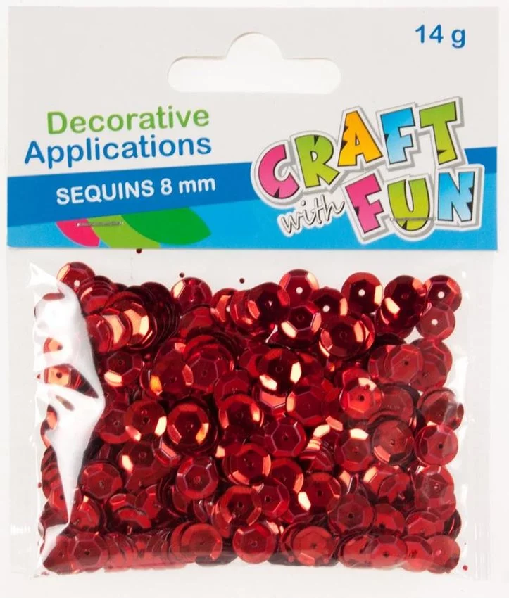 Przy pomocy Cekinów Craft with Fun można zaprojektować własne ozdoby lub dekoracje. Idealne do wykonywania wszelkich prac dekoratorskich, jak również do zabaw plastycznych, do wzbogacenia ozdób wykonanych techniką decoupage. Używaj tych produktów w połączeniu z innymi akcesoriami oraz kompletami z serii Craft With Fun! Opakowanie zawiera metaliczne, okrągłe, czerwone cekiny o średnicy 8 mm. W opakowaniu znajduję się 14 g. cekinów. Cekiny wykonane z plastiku. Produkt przeznaczony dla dzieci w wieku: 3+. Pakowany w folię z zawieszką. Wymiary opakowania(szer. x wys.) [cm] 10x12.