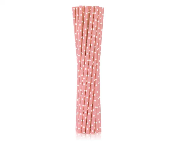 Rurki (słomki) pap. jasnoróżowe w białe groszki, 6x197mm / 12 szt.  /GoDan