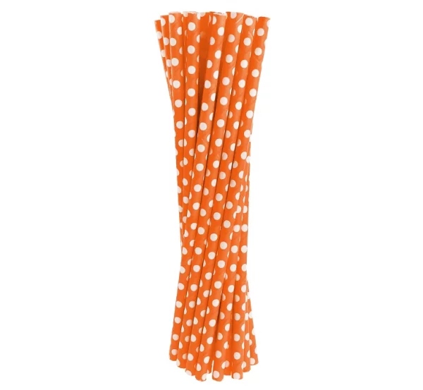Rurki (słomki) pap. pomarańczowe w grochy, 6x197mm / 24 szt. KK  /GoDan