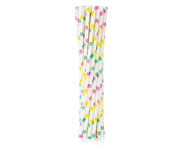 Rurki (słomki) pap. kolorowe groszki, 6x197mm / 12 szt.  /GoDan