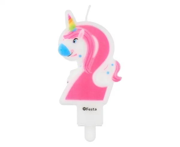 Świeczka cyferka 2, z Jednorożcem, 7,8 cm  /GoDan