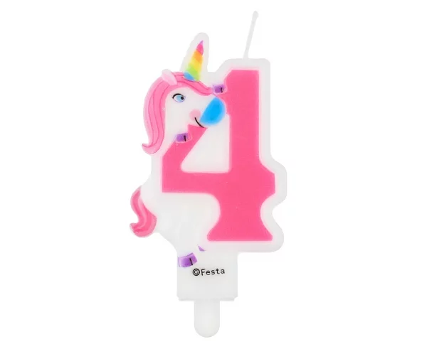 Świeczka cyferka 4, z Jednorożcem, 7,8 cm  /GoDan
